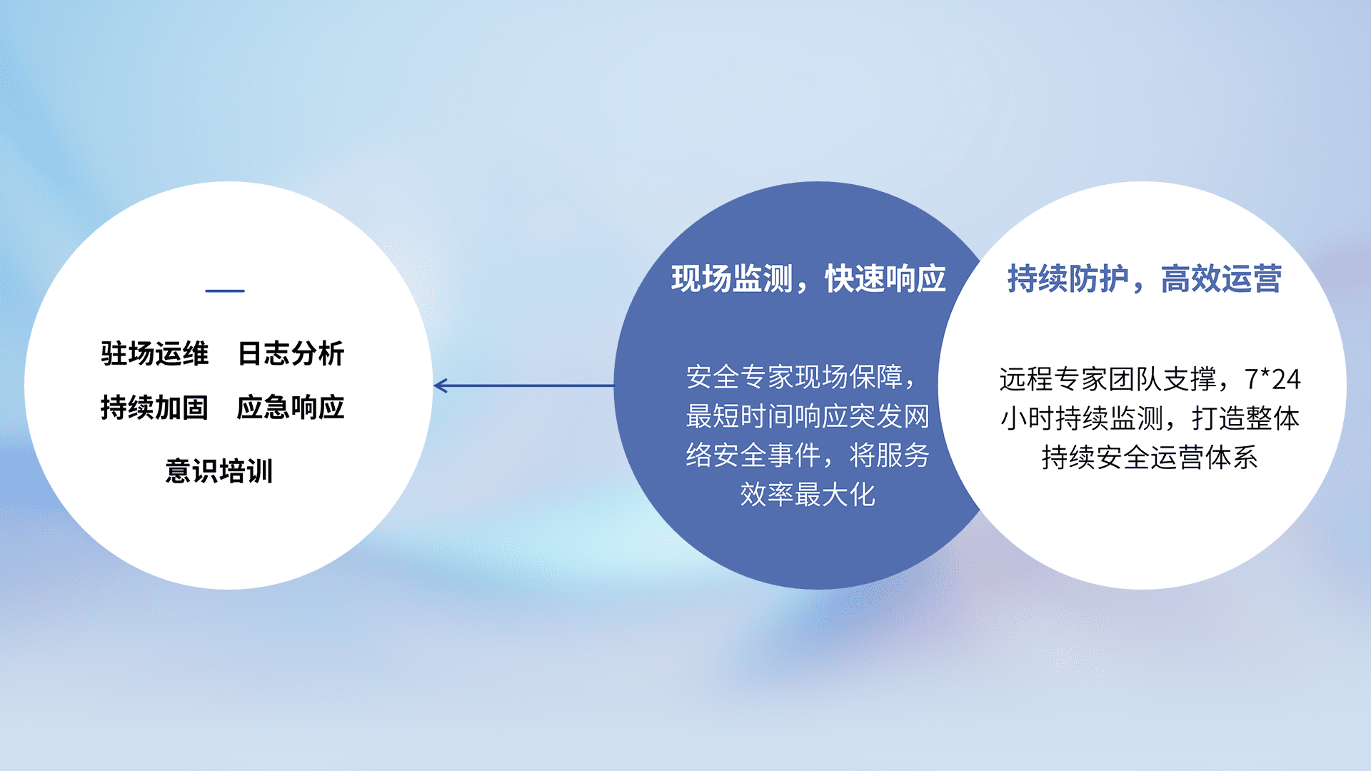 针对客户行业特性,,提供专属的一站式安全管理服务,,帮助客户全面感知网络空间威胁,,,,通过安全专家的线上、、线下防护支持,,实现风险闭环,,,将安全保障常态化,,,为客户打造常态化安全运维运营服务。。。。